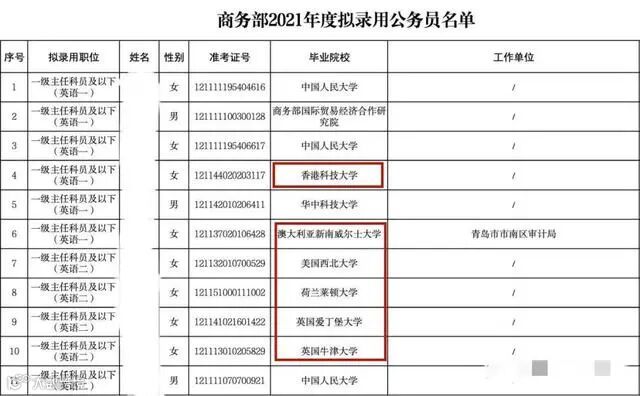 在2021年商务部招录的公务员中,近一半是留学生。可见名校留学生海归的竞争优势明显。