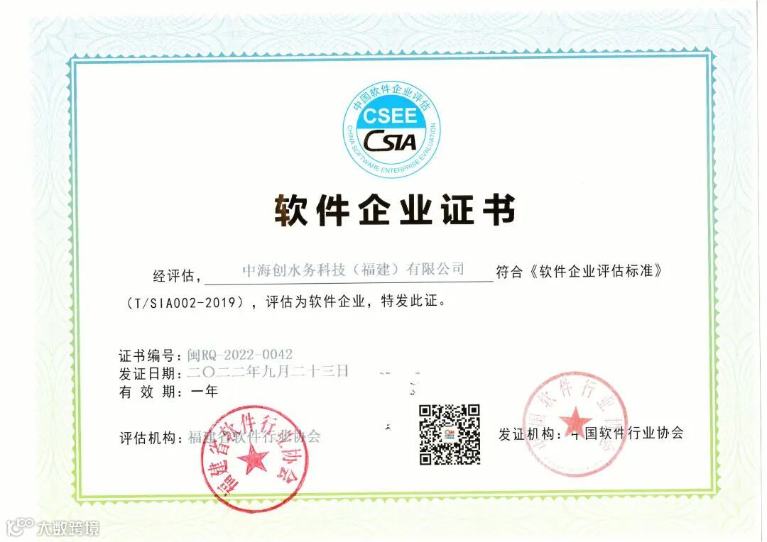 软件企业认定是以企业自主创新、提升核心竞争力、提升软件及信息技术服务企业开发能力为目标而制定的资质认证体系,认证过程严谨、认定审核严格。软件企业证书作为国家推动软件产业的发展,增强信息产业创新能力和国际竞争力,促进国民经济持续、快速、健康发展而制定的评估体系,有利于进一步推动软件企业的能力提升,加快推进行业自律,帮助企业做大做强。能够顺利通过“双软企业”认证,代表着中海创水务科技公司在产品研发、软件应用、规范化管理及自主创新能力等方面获得了权威机构的认可,我们将继续深耕前行,为新老客户提供更完善、更实用的产品与服务。