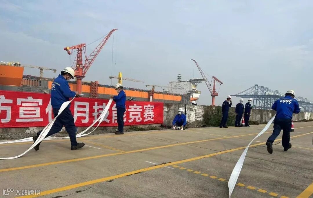 开展消防应急演练。外高桥海工组织开展“两不一直”应急消防演练,检验公司夜间应急处置能力。公司各部门结合自身实际,开展生产现场、办公区域应急演练活动。