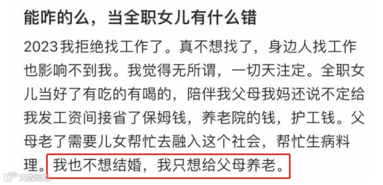 全职女儿看似美好 实则无奈