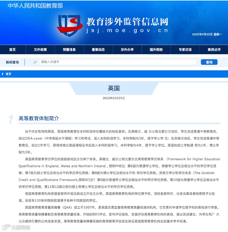 其次可以在中国教育部涉外监管信息网查询该学校,为了让留学生确定自己没有上“野鸡大学”,避免落入野鸡大学的套路,教育部的教育涉外监管信息网会定期更新认可的留学国家以及其院校名单。