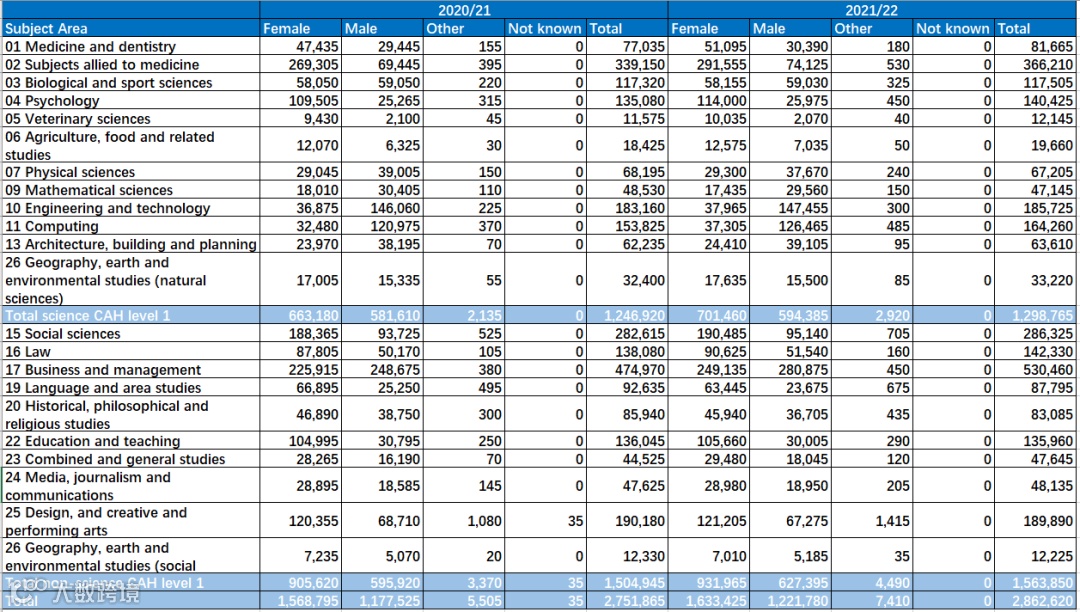 英国有着众多大学,其中包括很多世界顶尖高等学府,很多中国学生会将英国作为自己留学的首选目的地。根据HESA发布最新数据显示,2021/22学年共计有2,862,620名学生在读,其中中国学生占比第一,总共有近17万人。