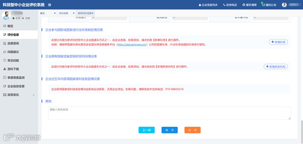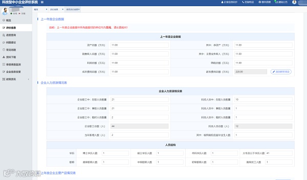 3.注册成功并完成实名认证的企业可进入“评价工作系统”,按要求在线填报《科技型中小企业信息表》(以下简称《信息表》)及上传相关证明文件。