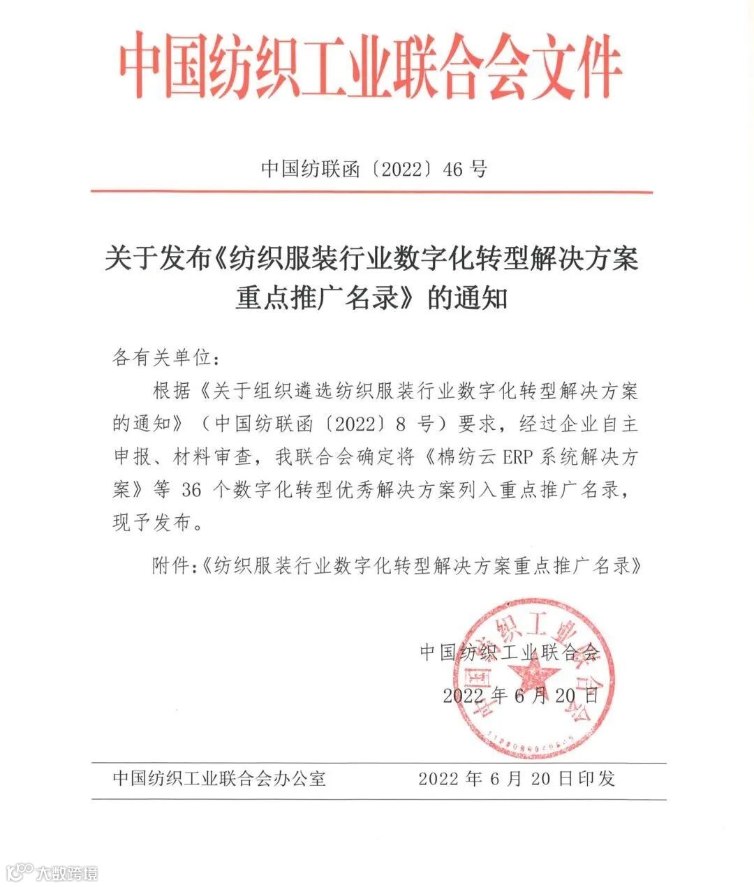 近日,中国纺织工业联合会发布《纺织服装行业数字化转型解决方案重点推广名录》,遴选确定36个数字化转型优秀解决方案,中海创科技集团子公司福州市数字产业互联科技有限责任公司“基于数据采集的设备管理系统”与“基于标识解析的仓储管理系统”双双入选。