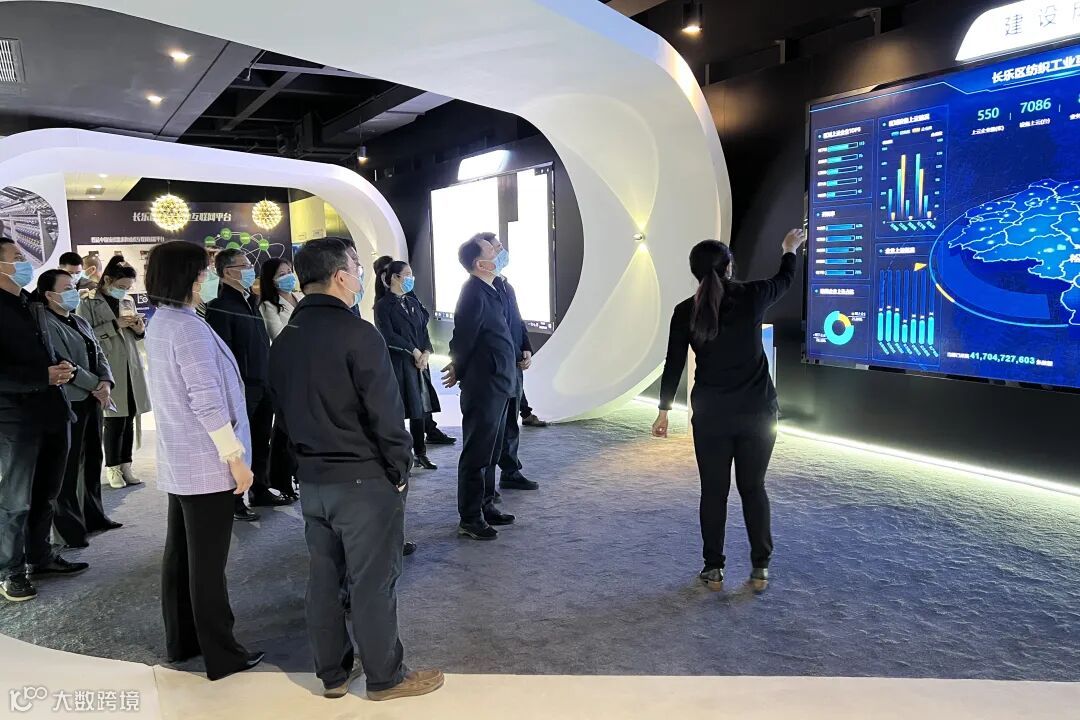 参访领导一行参观了长乐区纺织工业互联网平台展示中心,深入了解长乐区纺织工业互联网平台的底座核心技术——IAP OS、平台建设运营成果与典型案例以及在数字金融等领域赋能纺织企业的创新实践经验。