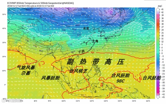 第二,今年11月中旬副热带高压偏北,给台风腾出了地方;
