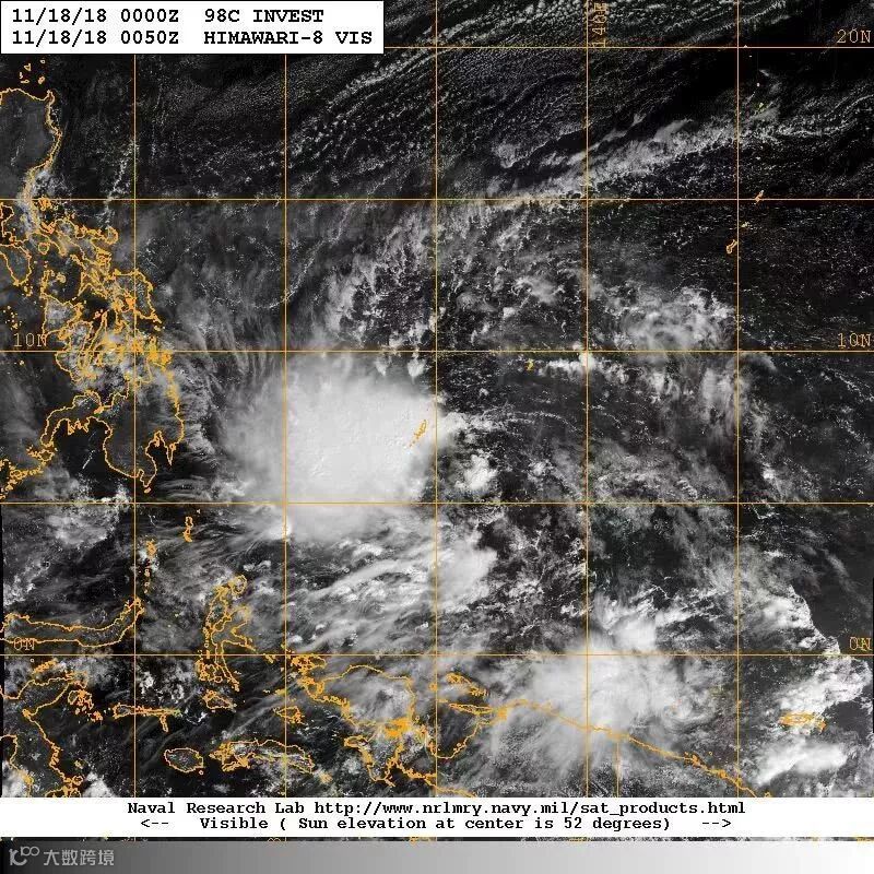 位于菲律宾以东的台风胚胎98C正在迅速发展
