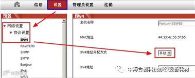 6)点击“设置”→“网络设置”→“协议设置”→“IPV4”,建议将“IPV4地址分配方式”改为“手动”,如下图: