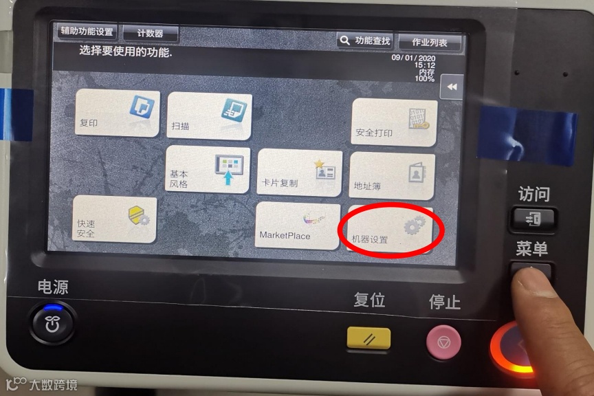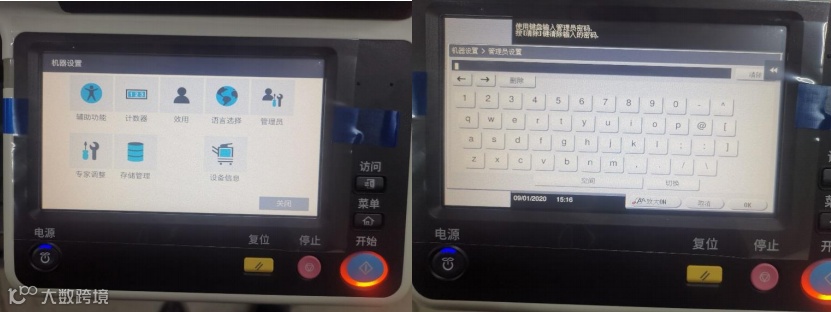 10、机器启动完后(必须要等启动完成,即黄灯闪烁停止后,才能操作机器),依次按【菜单】-【计数器】-【显示小键盘】,然后顺序按:停止-00-停止-01,机器提示输入默认密码,连续输入 9272四次,按结束,即可以进入维修模式。