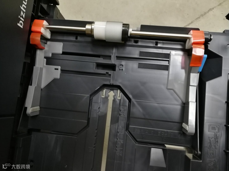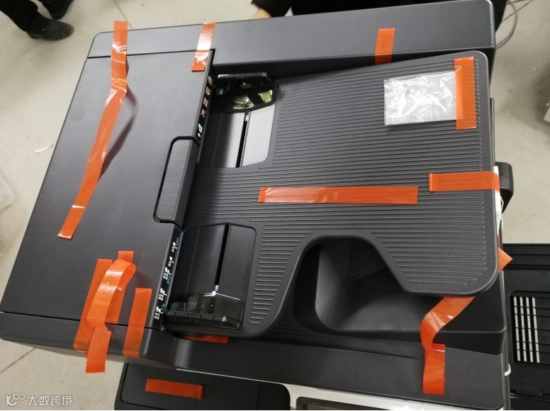 5、安装输稿器,把输稿器从包装中取出,白板在输稿器上纸板后面(记得拆下)。