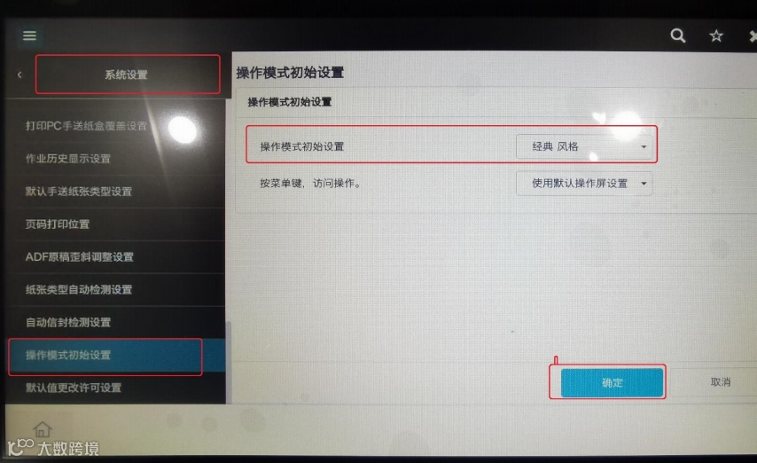 18、进入管理员模式,【系统设置】,操作模式初始设置,建议改为【经典风格】,并确定。退出管理员模式,完成主机安装。