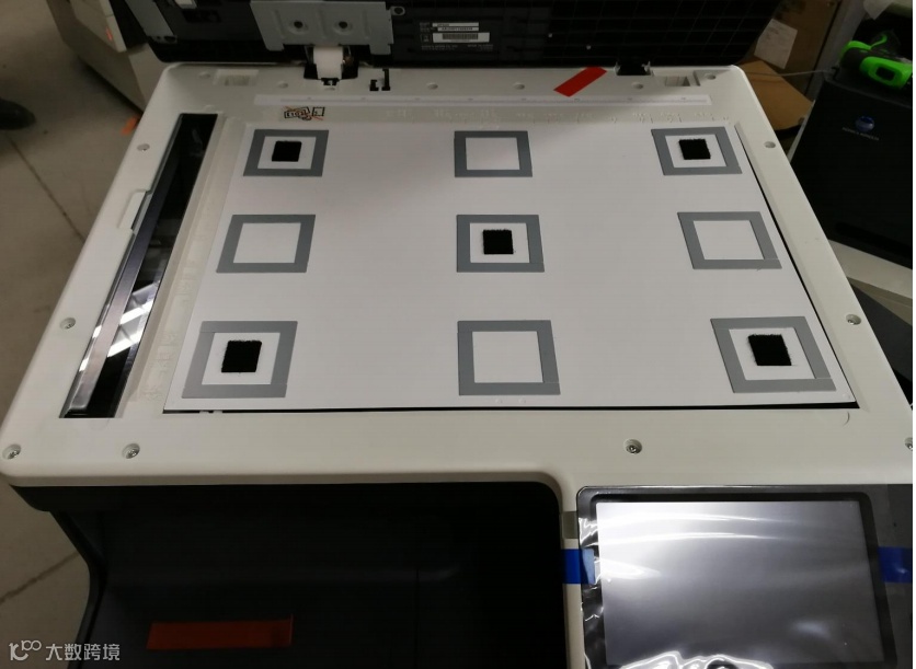 6、安装好输稿器,把白板顶稿台左上角放好,关下输稿器,确保输稿器和白板粘好。