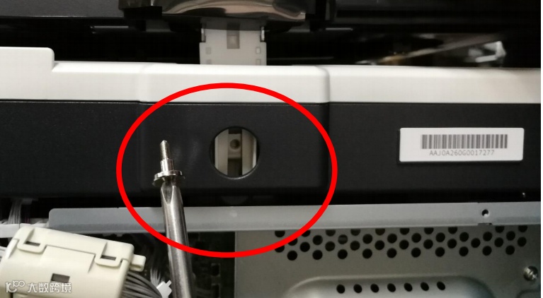 8、把输稿器左边稍微抬高,上好输稿器的固定螺丝。