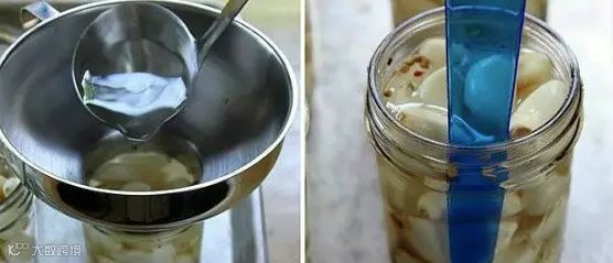 300g新蒜去皮洗净放进容器中,加入600ml陈酿米醋,再加上300~400g冰糖,密封腌制一个月即可。