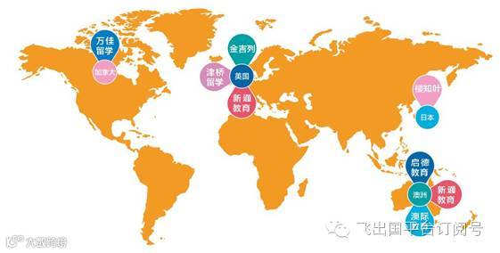 新东方前途出国:作为以托福、GRE起家的新东方语言培训学校的衍生产业,在大型留学机构中成立较晚,成立时已经拥有一定规模的客源,并非从单一国家的业务开始。