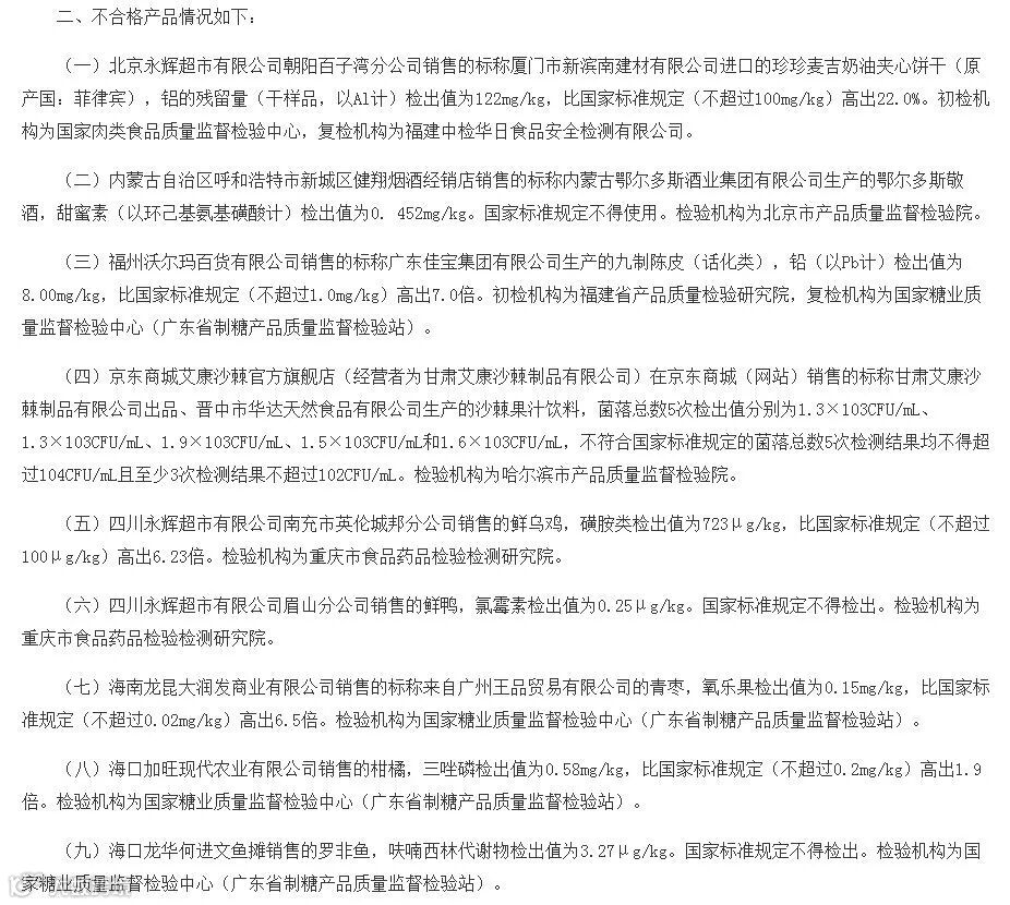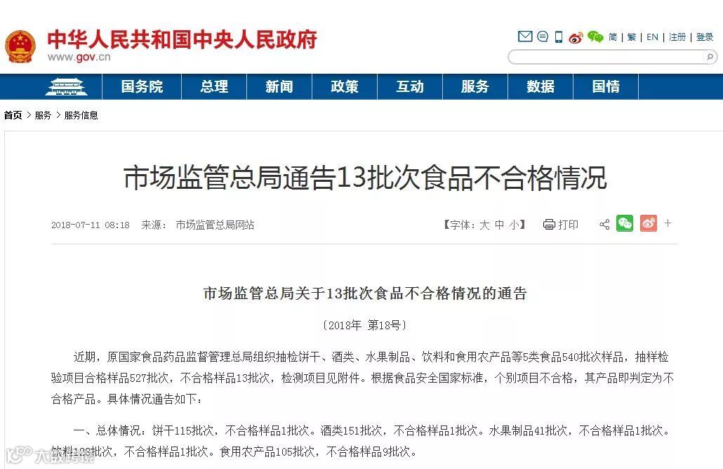 近日,市场监管总局发出通告,关于13批次食品不合格情况!