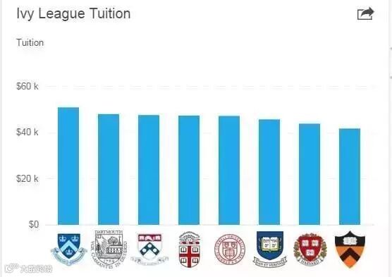 其中普林斯顿是里面最便宜的,学费为$41,820;而最贵的是哥伦比亚,学费为$51,008,也是藤校里唯一一所学费超过5万美金的。