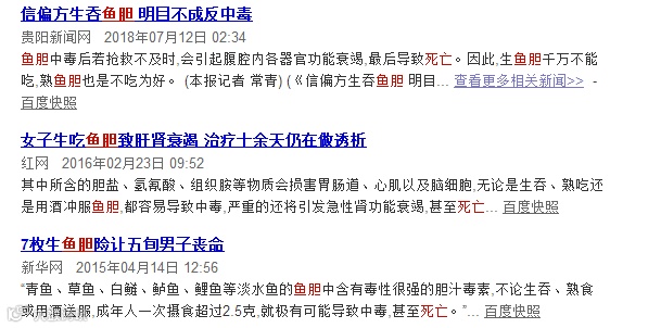有些人说吃鱼胆能治高血压、慢性支气管炎和眼病,但他们不知道的是,这样做不仅不治病,反而会中毒,甚至丧命!一条三四斤的鱼,里面的一颗鱼胆就能放倒一个壮汉!这样的悲剧并不少见↓↓