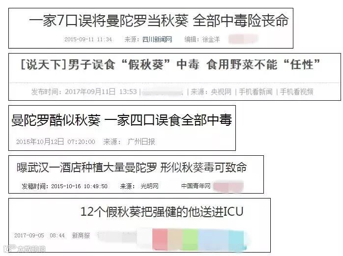 近年来,因为将曼陀罗认成秋葵而误食中毒的新闻也屡屡见诸报端: