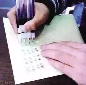 老师经常布置写字作业,偷懒的孩子会用好几支笔绑在一起,刷刷几行写完了!