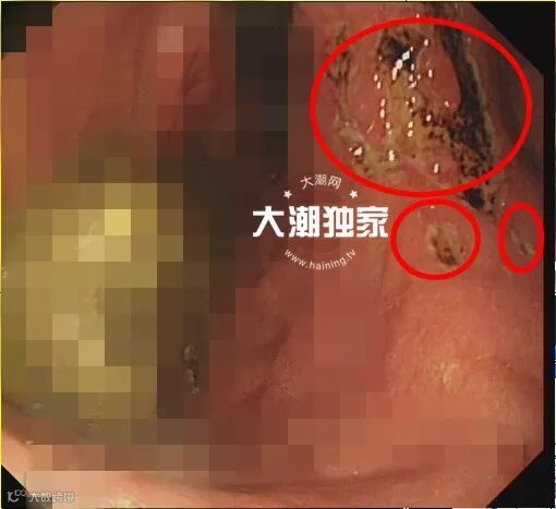 原来张大伯胃里有大大小小十余个溃疡,其中最深最大的一个溃疡直径将近5-6cm,表明覆盖着新鲜的血痂。