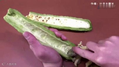 用手去苦瓜籽?去不干净!用个勺子刮刮刮,就能把白色部分都刮掉了。还可以用来去任何有籽的瓜果哦。