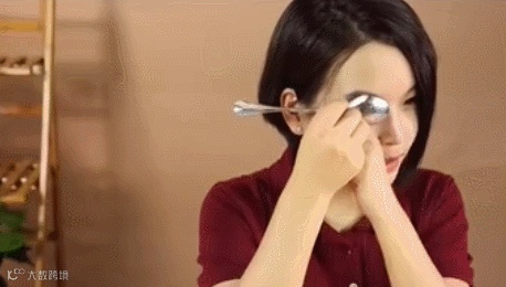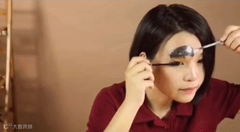 勺子简直就是万能美妆利器,可以利用勺子的弧度来画眉毛,还可以画出可爱的猫眼眼线。