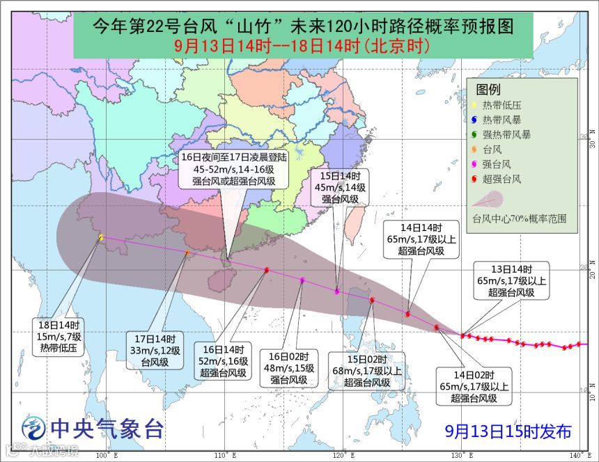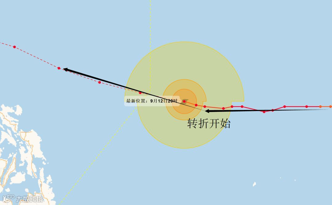12日白天,超强台风“山竹”出现了重大转折!它的路线从大致正西转折为西北偏西。