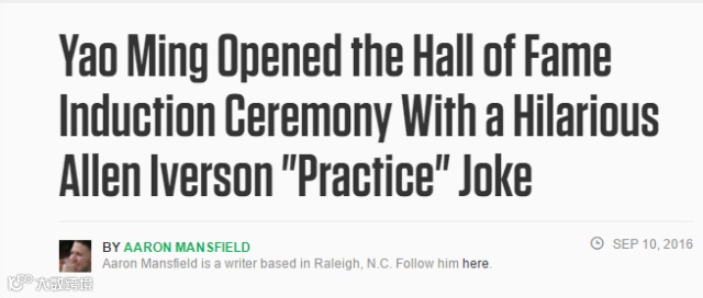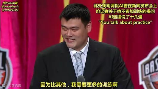 姚明说,当我听说要第一个演讲的时候,我想肯定是某人弄错了。君莫笑,因为我认为第一个演讲的应该是伟大的阿伦·艾弗森。为什么?因为比起他,我需要更多的训练啊。