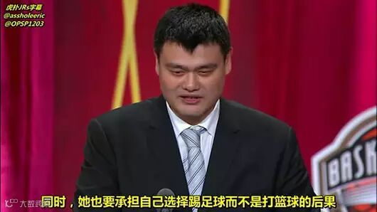 调侃了推荐人、对手,姚明还不忘拿自己的女儿来轻松氛围。女儿选择踢足球而不是打篮球,这让身为篮球巨星的爸爸耿耿于怀。