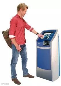 将您在上一步中在柜台拿到的票据插入智能门。
