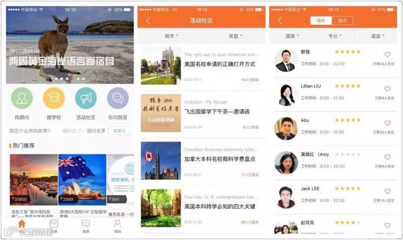 该款"飞出国“APP有游学、留学、语培、活动四大社区,海内外顾问全程一站式服务,出国的一切,这里应有尽有。商城咨询下单,平台监督支付,客服追踪反馈,这个太专业,准备澳洲留学的小伙伴们不妨下载一个试试。