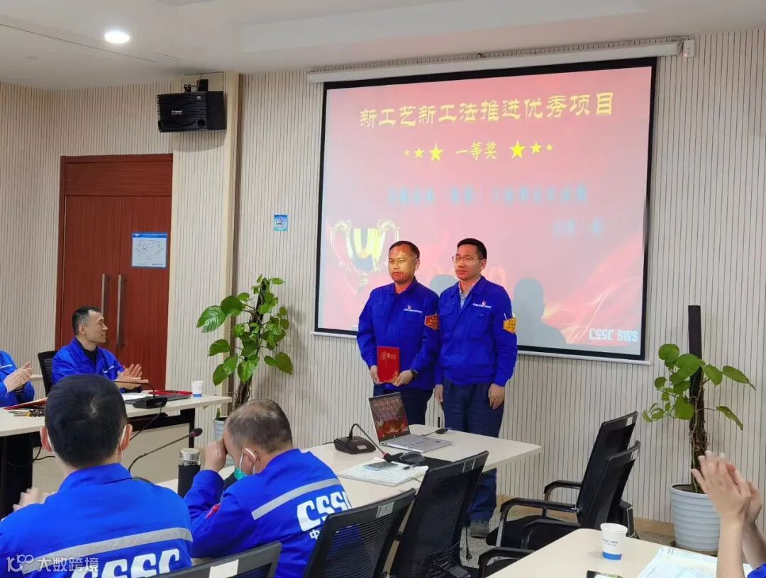 活动对新工艺工法推进优秀项目进行了颁奖表彰。公司工艺专家从经济效益、技术提高、效率提升、质量改善、安全性改进等维度对项目进行评分,综合评分排名靠前的“大型邮轮干坞调试工艺”等项目获得表彰。