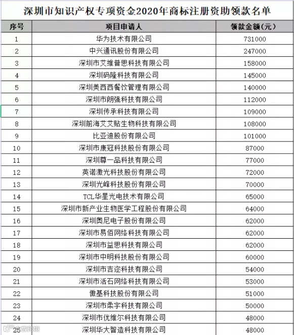 完整商标注册资助名单可复制网址查询:http://amr.sz.gov.cn/xxgk/qt/tzgg/content/post_9382536.html。