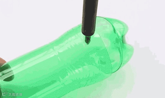 下雨天雨伞湿淋淋,上车的时候都不知道该放哪儿,像这样剪开瓶底戳两个洞绑上绳子,就做好了一个收纳筒!
