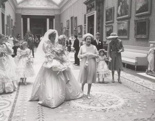 1981年查尔斯王子和戴安娜王妃的世纪婚礼。包括旁边的英女王也没想到16年后戴安娜王妃就香消玉殒了。