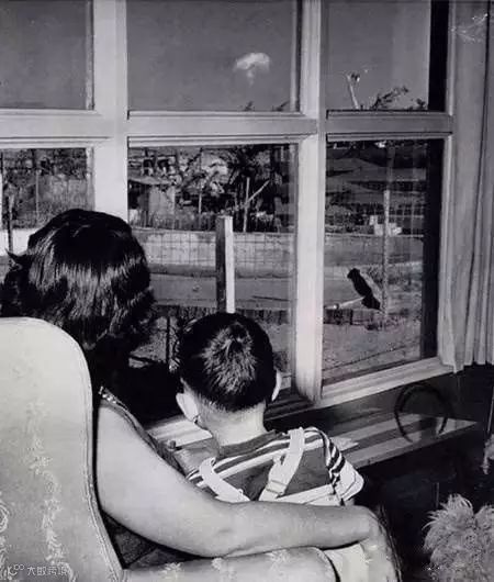 1953年拉斯维加斯,一个母亲带着孩子看核武器爆炸。