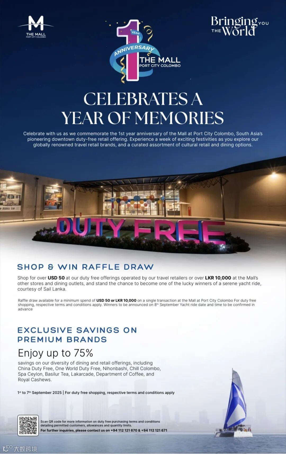 规则:9月1日至7日期间,在非免税区单笔消费10000卢比或免税区单笔消费50美金,都可参与抽奖;9月8日抽取公布最终获奖名单!