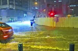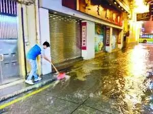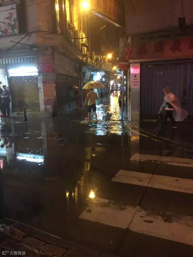 本澳開始下起大雨,雨勢隨後愈來愈密,氣象局於晚上八時三十二分發出暴雨警告信號,至九時三十五分取消。暴雨下本澳多處包括黑沙環、下環、關閘、新馬路一帶等出現輕微水浸,水深至腳眼,行經車輛濺起水花,有途人沒有帶備雨具,甚為狼狽,亦有途人涉水而行。在內港有污水懷疑從渠口倒灌,傳出臭味,有商戶忙於清理積水。