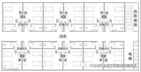 面板无线AP:覆盖周边2个房间/宿舍,1-2道墙的空间。无线覆盖效果较好。