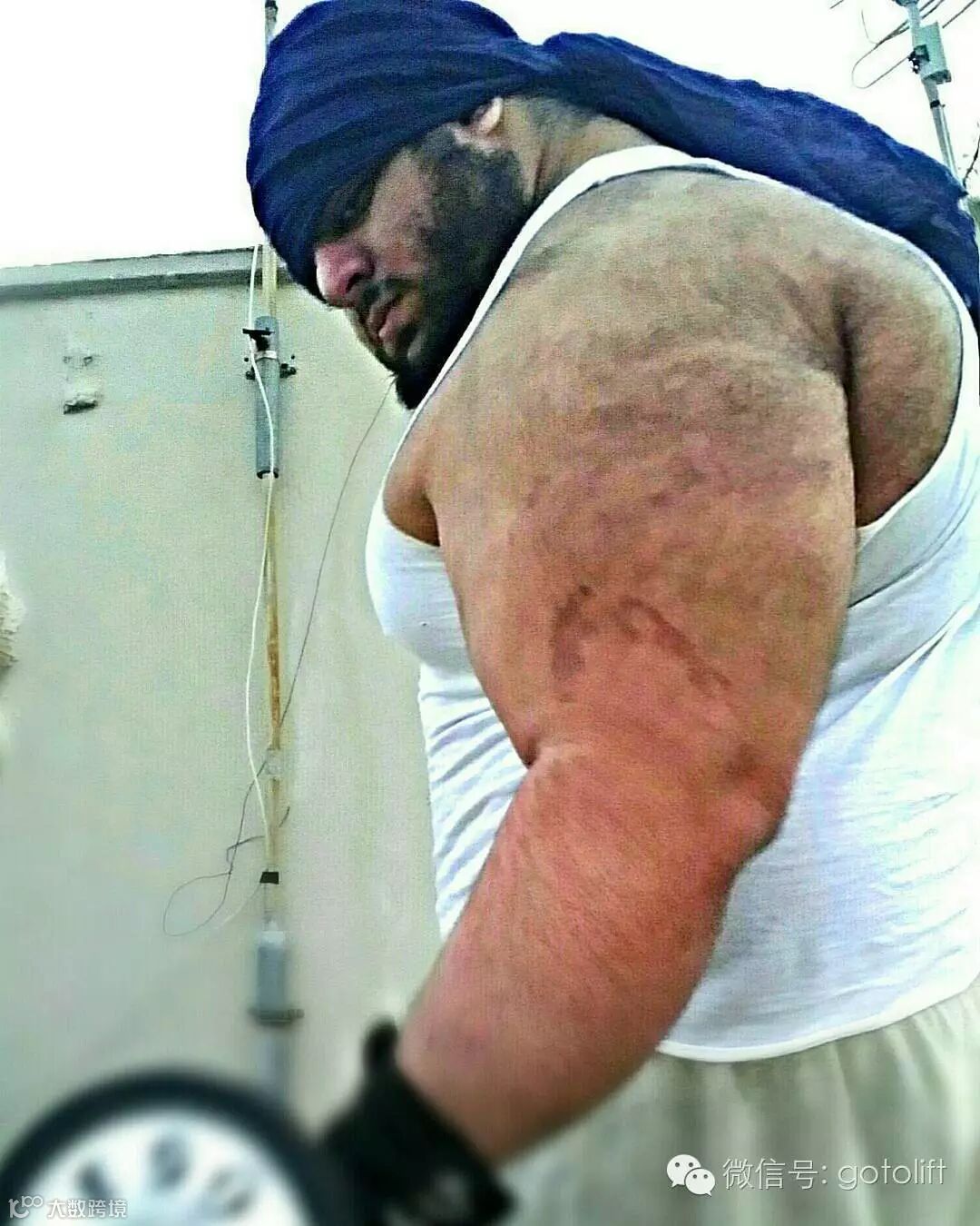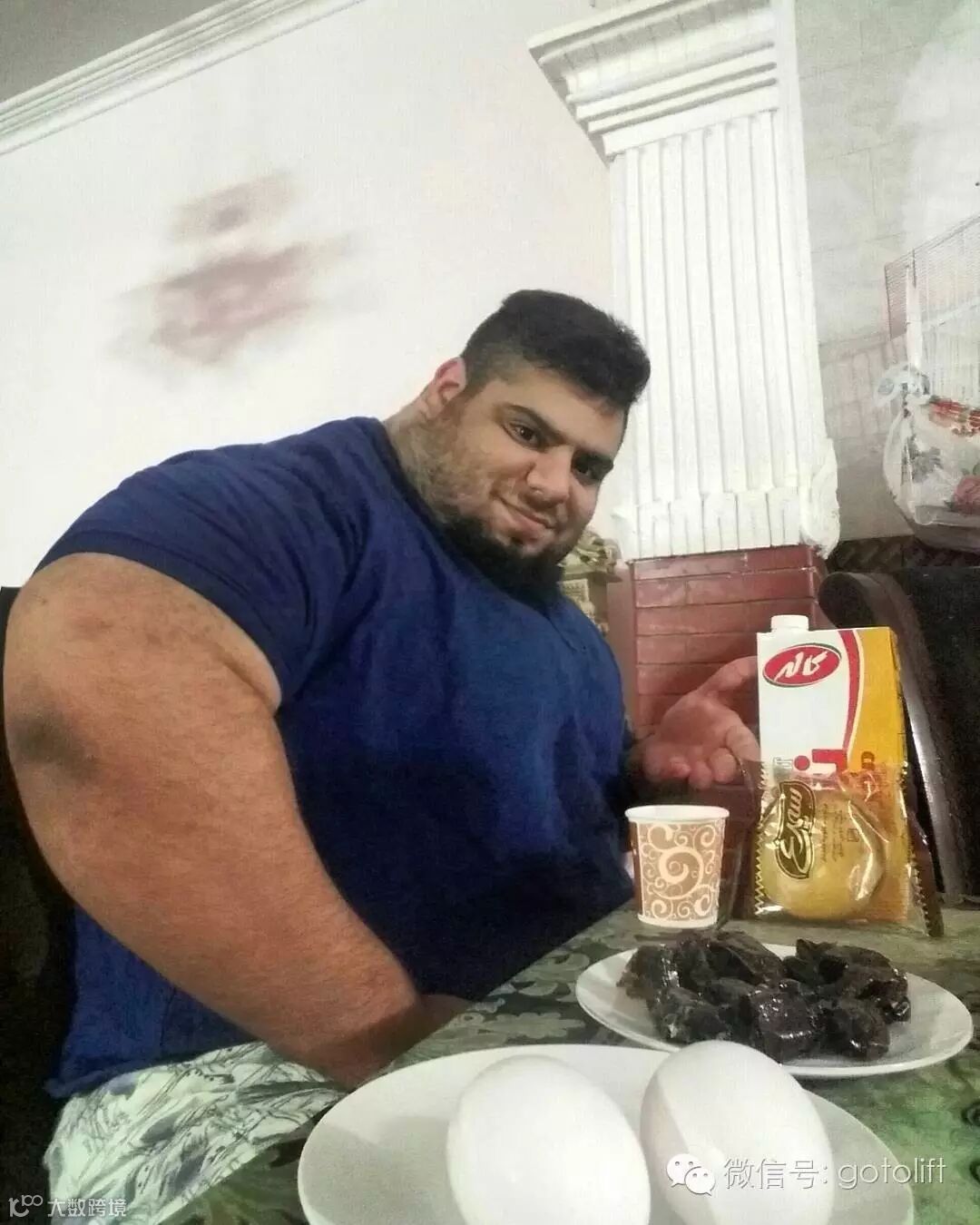 所以尽管这位伊朗巨兽的健身方法简单、条件简陋,饮食存在限制(穆斯林),他依旧能够长非常大块的肌肉。