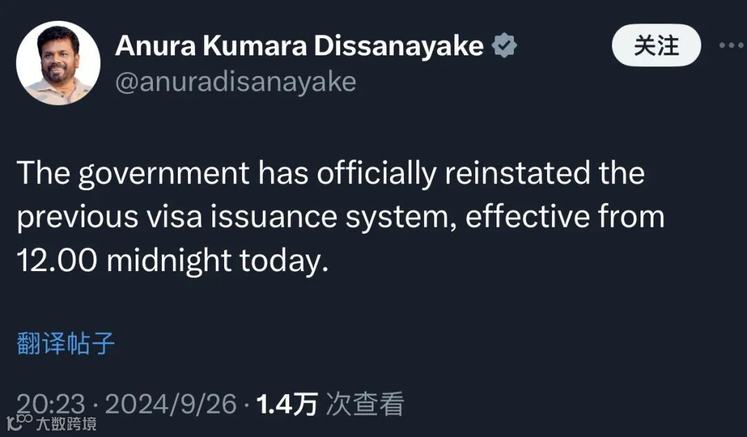 晚间,斯里兰卡新总统发推,公布一个好消息!