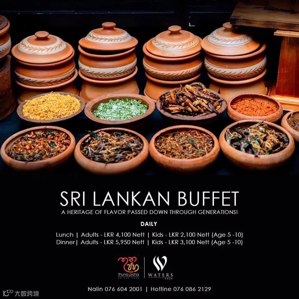 如果国内有朋友来科伦坡,想吃兰卡餐的话,推荐可以试试在议会区域的Waters Edge酒店的兰卡美食自助,午餐含税价4100卢比/人,晚餐含税价5950卢比/人。