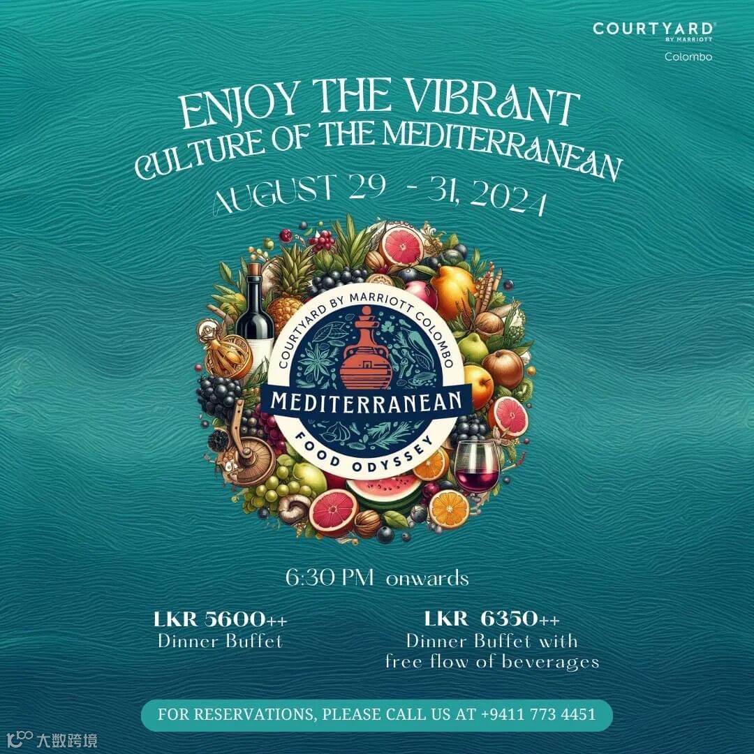 8月29/30/31日的晚餐自助,每日晚上6点半至11点,地中海美食之旅。