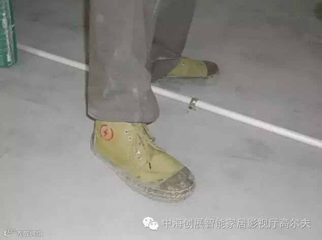 9、PVC管应用管卡固定,它的接头均用配套接头,用PVC胶水粘牢,弯头要用弹簧弯曲,穿着绝缘鞋操作是很规范的。