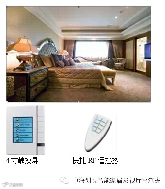 • 也可在床头墙面嵌入1台小小的液晶触摸屏(UBiQ230),它是另一类整宅集中控制终端,可以对该卧室的灯光、窗帘进行控制,也可以对其它房间进行控制。
