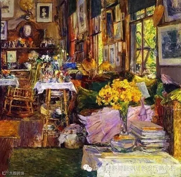 而在比尔·盖茨的图书馆里,则悬挂着施尔德·哈森的印象主义画作《花房》《Room of Flowers》,价值2千万美金(约合1.3亿人民币)。