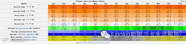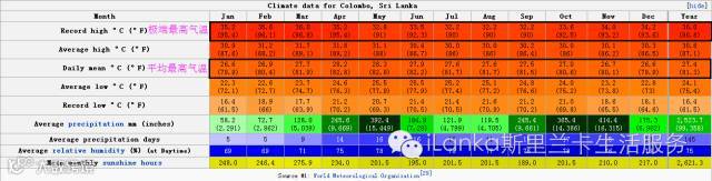 而仔细看看,不难发现7/8月份的科伦坡极端最高气温也就32.2℃,而在1-4月份,极端高温都在35℃以上。而平均最高气温也是在3/4月最高,接近32℃。