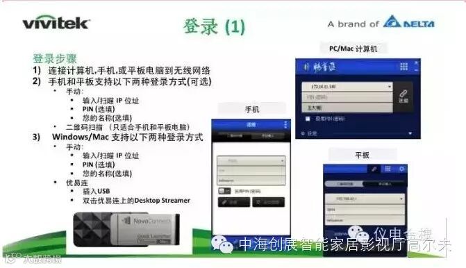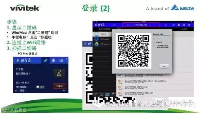 台达畅享汇还可支持二维码扫描,手机和平板电脑登录只需扫描二维码就可以轻松连接投影机。