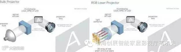 虽然听起来上述激光放映设备充满未来主义色彩,但在现实中,激光投影机与传统投影机没有太大的区别。对于投影机来说,最大的任务就是要产生光线,进而操纵光线在屏幕上形成图像。对于激光投影仪,最大的区别在于,产生光线的器件不一样。